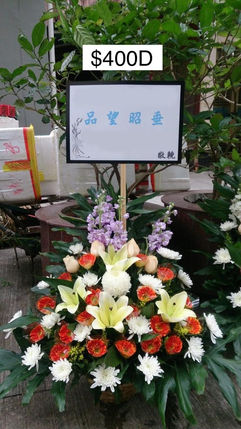 訂帛事花需知: 需要資訊:先人名稱。宗教儀式。送花日子、時間、地址,所選擇的花籃款式,送花人名字和先人的關係。一般送各大殯儀館是免運費的(一工作天之前訂)。送去教堂或其他出殯地址要報運費作實。若完禮後要清場,要預早報價安排。 直屬家人選花安排:配偶、子、女、媳、婿所訂的花會放在先人大相前,一般用矮身花籃、花圈或心形花(以下用花籃作統稱)。一般未婚子女會跟父母一起 安排。花店會因應關係自動安排高身或矮身的花藍。除以上所指的直屬家人外,一般提供高身花籃。 關係稱呼:在訂個別花籃為例,一定以最大輩分的送花人與先人關係而定。(例: 父母與子女一家送就按父母對先人的稱呼)。若是姪送花,就要指明怎樣稱呼先人(例:叔姪還是伯姪) 獻花儀式:一般基督教在火化禮按制前,參與者會手持一支鮮花放在棺木上表達最後懷念。通常這花朵會在安息禮完結時,從現有花籃中抽鮮花來獻。若在其他禮儀中要獻花,則需要額外訂購鮮花(一般以康乃馨或玫瑰花)。 輓詞:基督教多數只用「主懷安息」,有些會用天主教的常用輓詞如「息勞歸主」,「主恩永偕」,「主恩永在」、「與主永偕」等 。一般基督信徒送花給未信先人用輓詞,會常用「永遠懷念」,帶出永恆永在的意思。若先人信傳統中國民間,花店會按先人年歲、性別和與送花人的關係而建議 。送花人當然可自定輓詞表達,一般4至8個字內。 棺面花:多數在基督教安息禮或火葬禮儀式時,放在棺木上面作裝飾用。